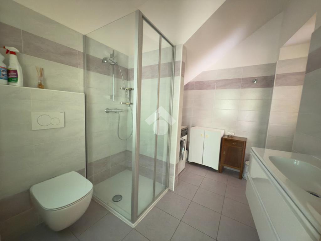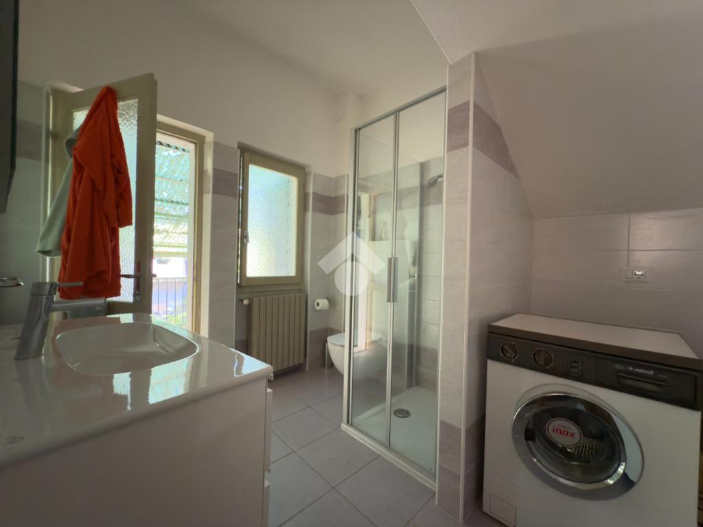 Attraverso una scala esterna si accede al primo piano, dove un ampio terrazzo abitabile introduce a un secondo appartamento, anch’esso bilocale. Qui troviamo un luminoso soggiorno con balcone, una cucina separata e abitabile, una camera da letto e un bagno ristrutturato nel 2022.