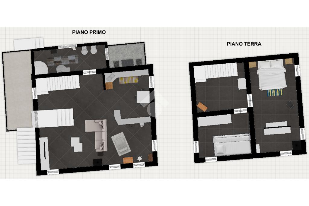 L’ingresso si apre al piano primo, dove si sviluppa una luminosa zona giorno open space impreziosita da travi a vista che donano calore e personalità all’ambiente, creando un’atmosfera accogliente e moderna allo stesso tempo. Sempre su questo livello si trova un bagno finestrato completo di doccia, con accesso diretto al terrazzo.